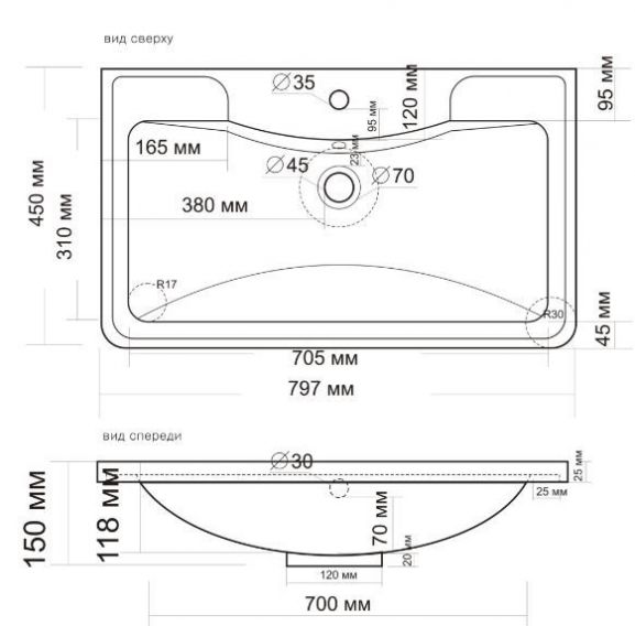 | Тип раковины | мебельная |