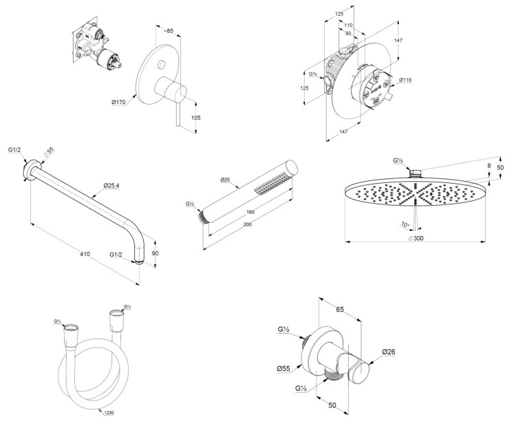 Душевой Комплект KLUDI BOZZ 38658N076 7 в 1 верхний душ 300 мм Kludi